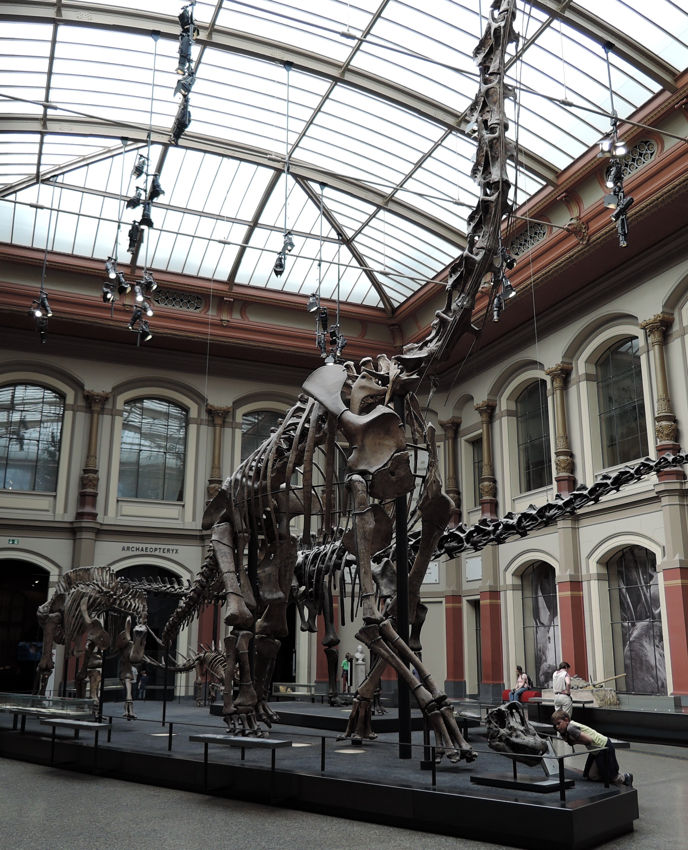 Es ist das größte aufgebaute Dinosaurierskelett der Welt im Naturkundemuseum von Berlin. Es wurde auf der Tendaguru-Expedition 1909-1912 in Deutsch-Ostafrika (heute Tansania) gefunden und als Brachiosaurus brancai aus dem Oberjura bestimmt. Benannt nach dem damaligen Museumsdirektor Wilhelm von Branca. Mittlerweile hat man aber doch viele Unterschiede zu den anderen Brachiosauren festgestellt und es wurde als neue Gattung Giraffatitan (welch blöder Name) klassifiziert.