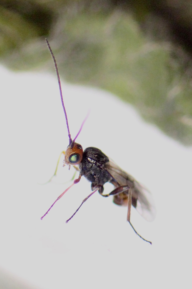 Aber nun ist die weibliche Marien-Käferbrackwespe (Dinocampus coccinellae) aus dem Kokon unter dem Käfer geschlüpft!