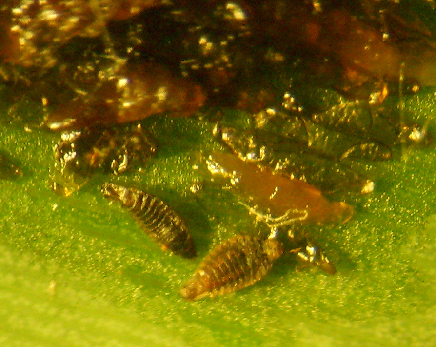 Im Rätselbild sind rechts oben zwei frisch geschlüpfte Lärvchen zu sehen, hier (unten) durchs Mikroskop nochmals vergrößert: