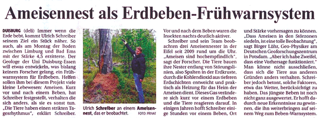 Nochmals zum Thema „Erdbebenvorhersage durch Waldameisen“.