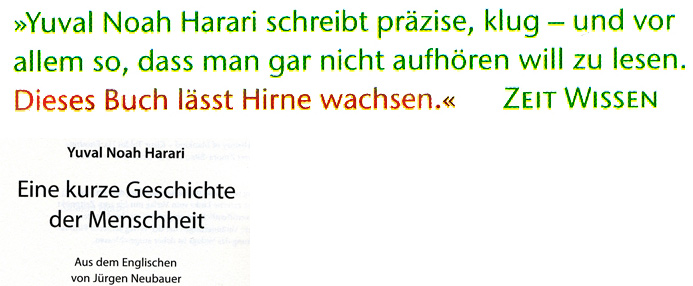 Noch habe ich es nicht gelesen. Auf das Buch aufmerksam wurden wir durch das zweite Werk von Harari: "Homo Deus".