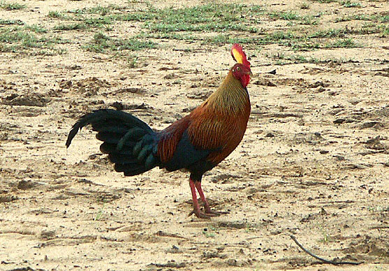 Ich würde dabei auf das Bankivahuhn tippen. Der Urvater unserer Haushühner. Da gibt es aber auch ein paar Unterarten.