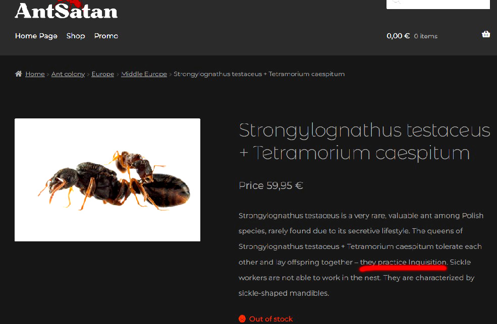 Aus dem Ameisenfutter-Angebot eines deutschen Shops: