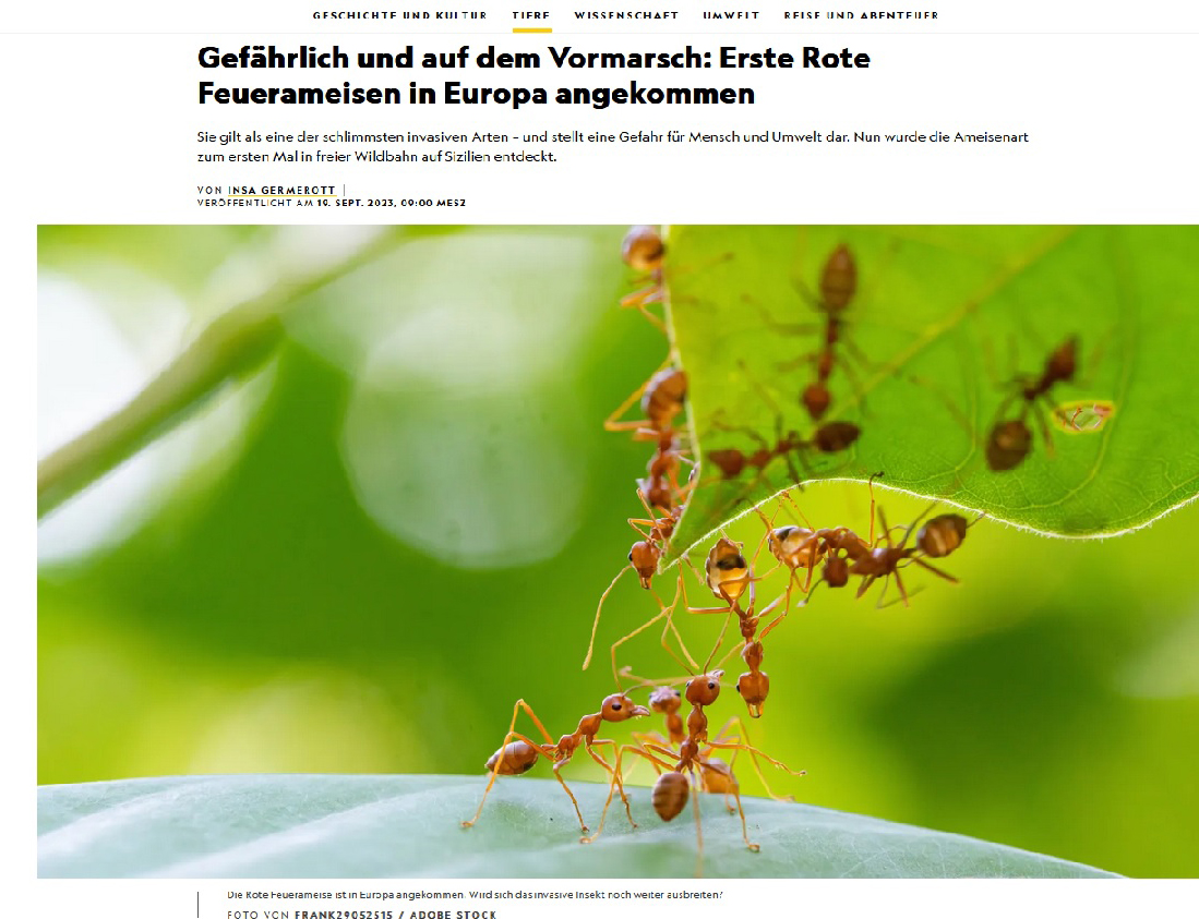 Im September 2023 wurde in vielen Medien über das Auftreten von Solenopsis invicta, der „Invasiven Roten Feuerameise“, in Italien (Sizilien) berichtet.