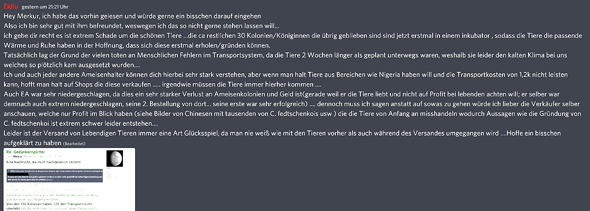„Wissenschaftsfeindlichkeit“ begegnet man vielerorts, zunehmend, sogar im Zusammenhang mit der Ameisenhaltung und ihren Risiken. Aber das will ich hier nicht weiter ausführen.