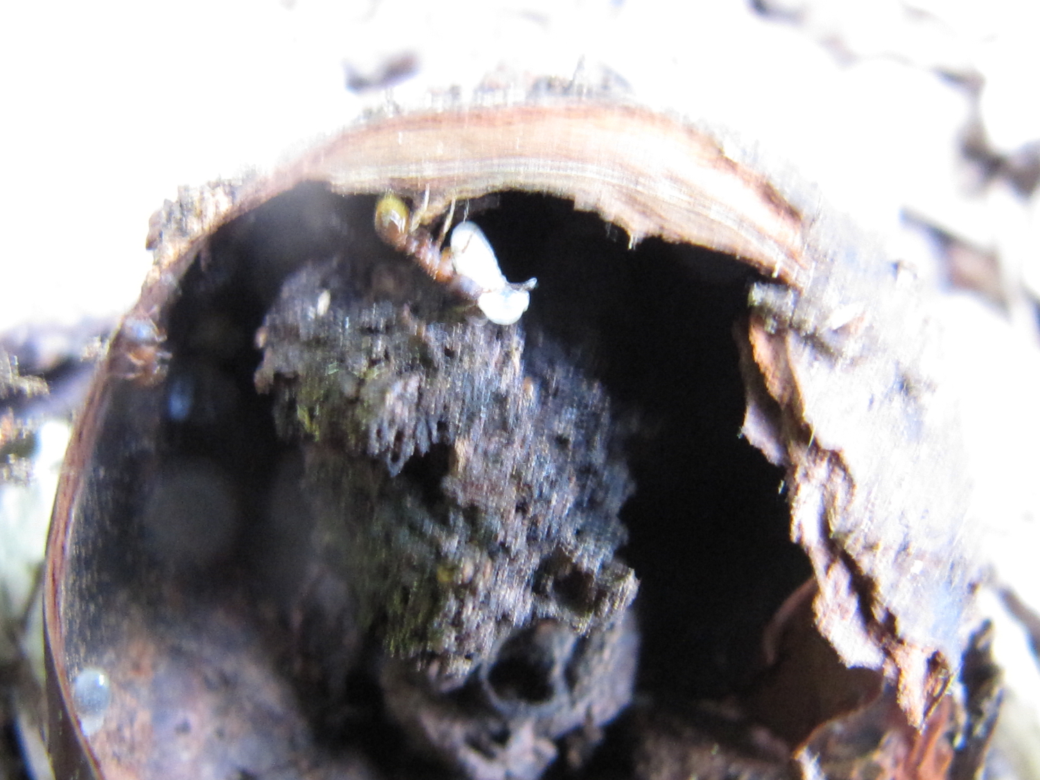 Ganz genau Boro! Und die wurde von Temnothorax cf. nylanderi als (Zweig-)Nest verwendet. Leider sieht man auf den Bildern nicht allzuviel - die Ameisen haben sich sofort in den intakten Teil zurückgezogen.