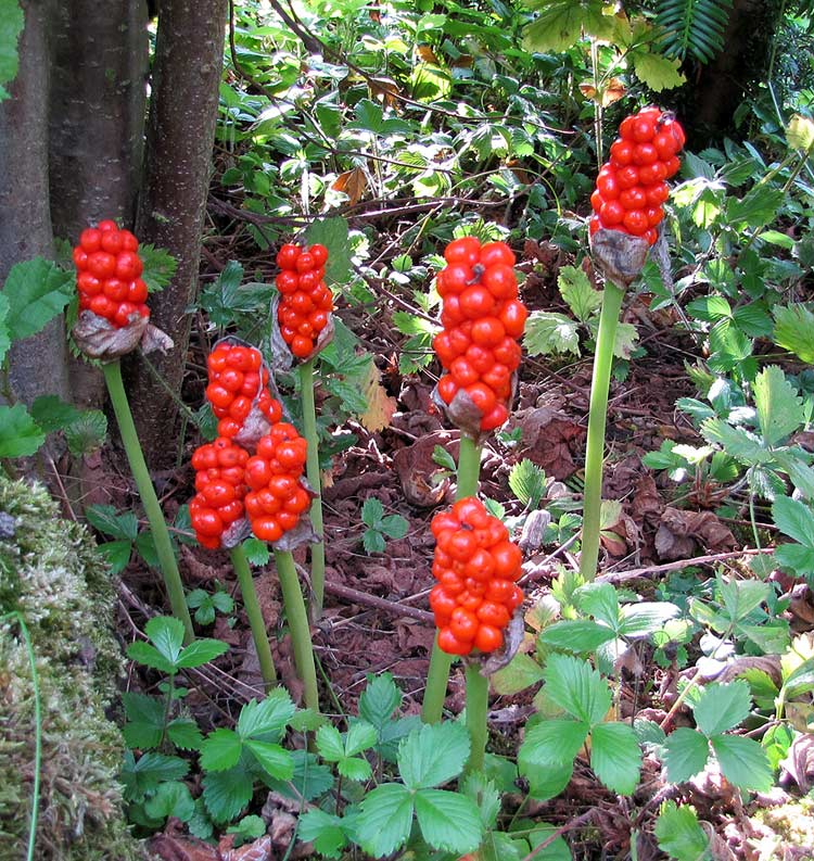 Arum maculatum. Oder auch Aronstab. Besonders interessant ist allerdings nicht die Frucht, sondern die Blüte dazu und der verwendete Bestäubungsmechanismus.