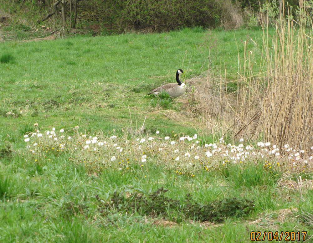 Im Hintergrund wacht der Kanada-Ganter am Teich, unweit des Nestes, auf dem seine Herzensdame brütet.