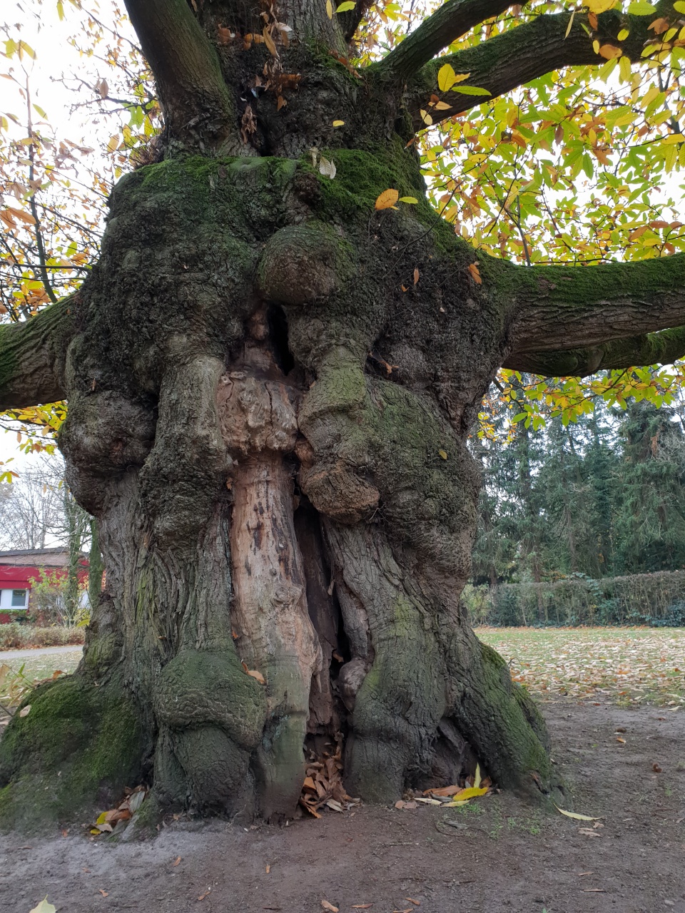 Vor über 200 Jahren hat man das morsche Holz aus dem Stamm entfernt und die Eiche ist seitdem hohl. Weil das Kernholz fehlt ist auch eine Datierung ihres Alters so schwierig.