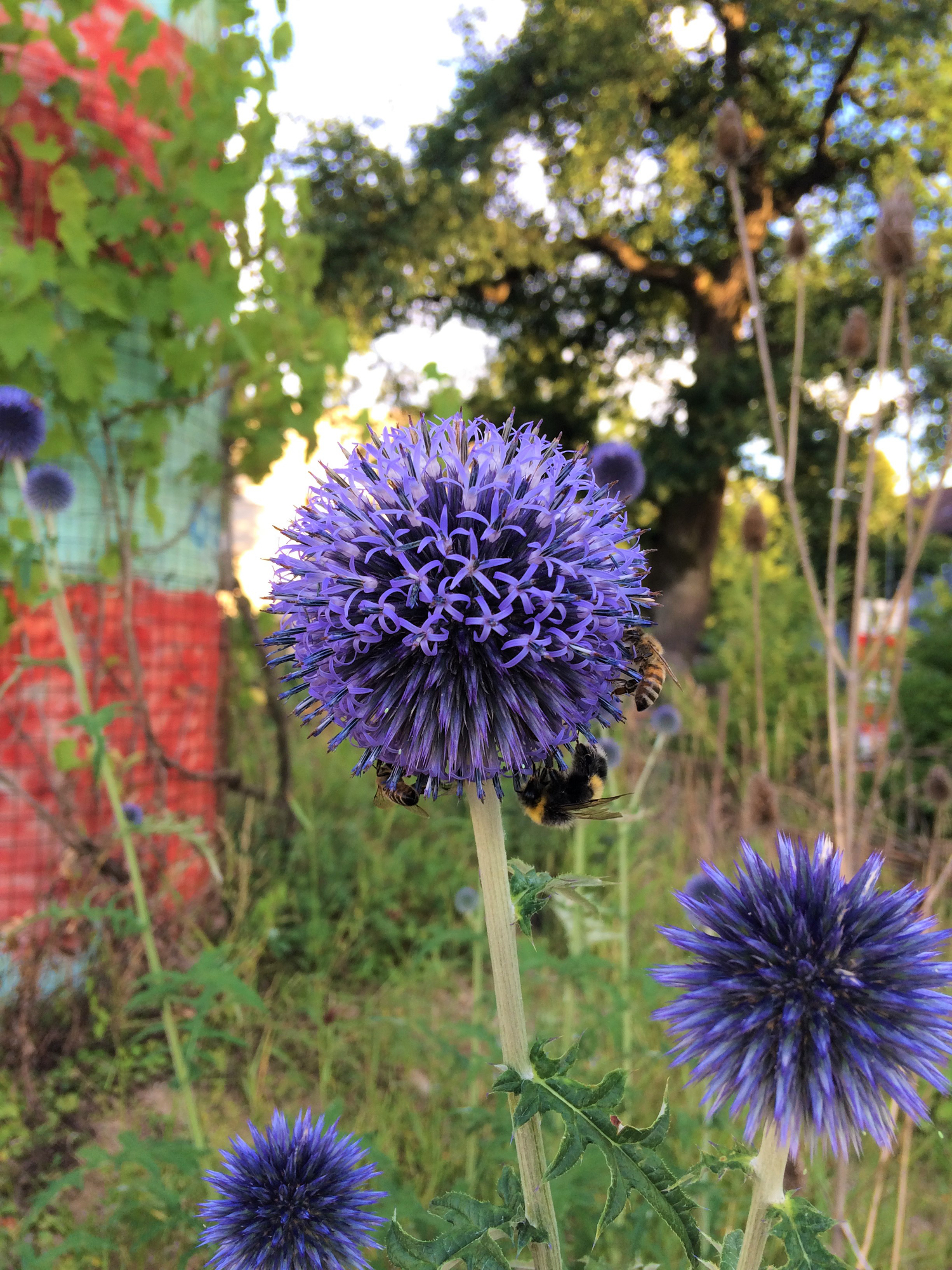 Kennt sich hier jemand per Zufall mit Kugeldisteln aus? Bienen und Hummeln lieben zumindest die Art im Bild - kann die jemand bestimmen? Und weiss jemand wie es um die Ausbreitung (und Widerstandsfähigkeit) der Art steht und ob es sich allenfalls sogar um eine "Problempflanze" handelt?