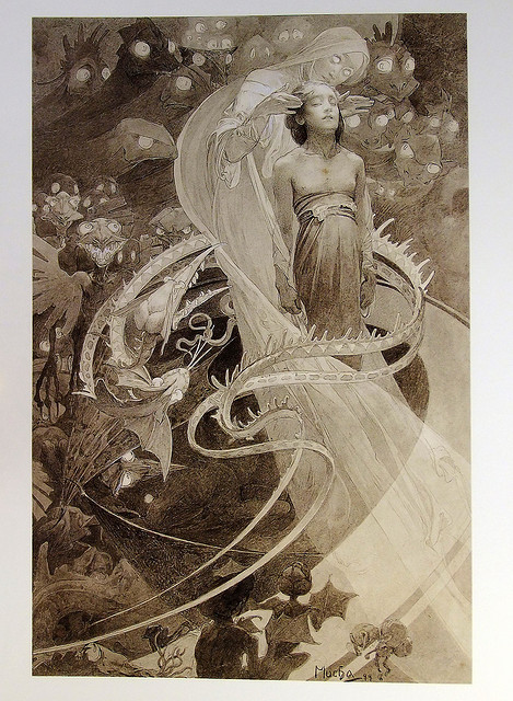 Drawings made by A. Mucha. He was one of the great masters of Art Nouveau.