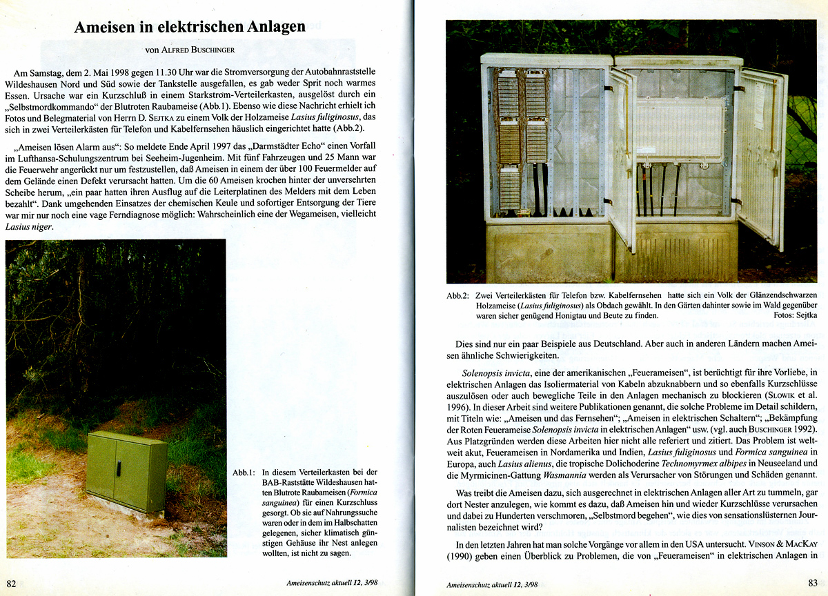 MfG und schönen Sonntag,In jüngerer Zeit hat man kaum noch etwas über solche Ereignisse gelesen. Vielleicht sind elektrische Installationen inzwischen besser gegen das Eindringen von Ameisen gesichert?