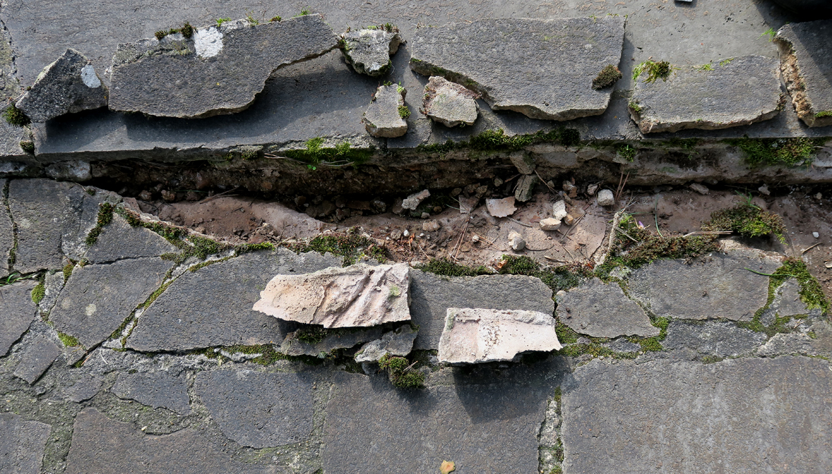 Gestern habe ich mich endlich aufgerafft, eine Bruchstelle in der Terrasse zu reparieren. Darin überwintert (und übersommert)