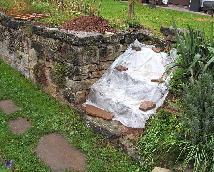 vor und hinter dieser Hecke angelegt. Die Exposition ist ziemlich genau Nord, und so musste ich warten bis die Sonne gegen 17:00 so