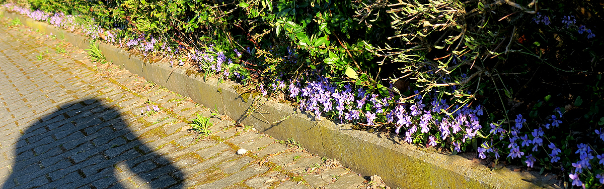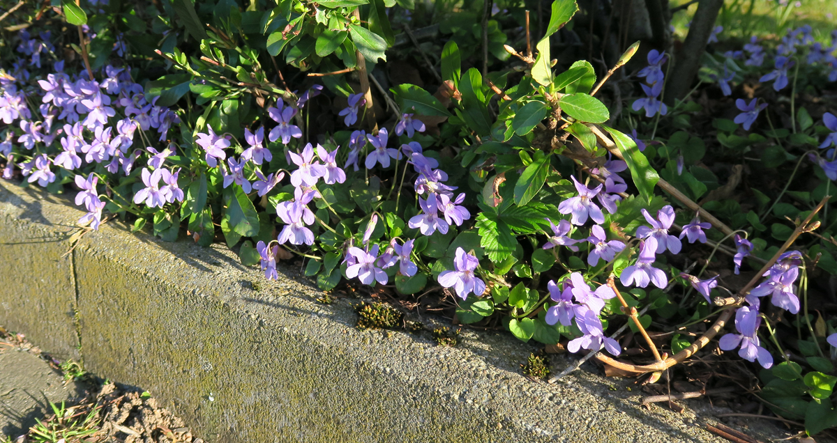 Die Veilchen wachsen schon seit Jahren im Garten verteilt, aber jetzt haben die Ameisen einen fast ununterbrochenen Blühstreifen