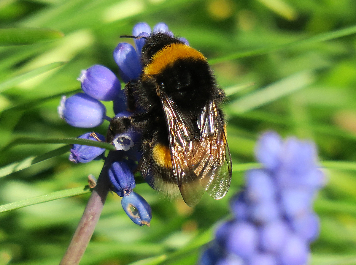 Heute in meinem Garten in Reinheim, an Träubelhyazinthen (Muscari sp.).