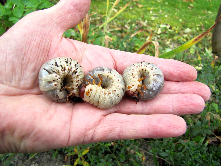 Mit einem alten Lausbubentrick (Grashalm reinstecken und das Tier rauskitzeln) konnte ich eine Bewohnerin hervorlocken: Es ist das letzte Larvenstadium, noch ohne Flügel,