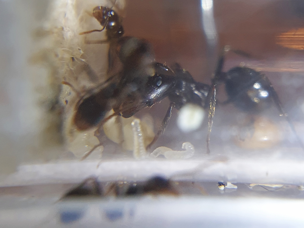 Ich habe nicht nachgesehen, welche Ameisen darin wohnen mögen. Draußen liefen keine herum; es war zu kalt. ;)