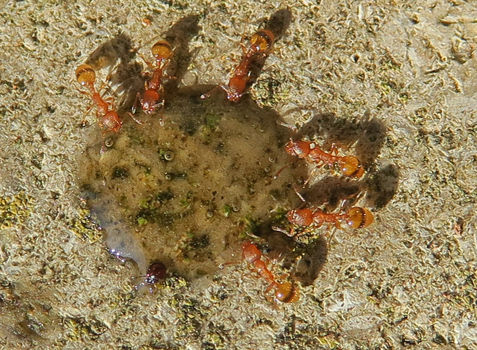 der am Boden kleine Pfützen bildet. Und genau daran haben sich in zwei Jahren jeweils im Frühjahr Braune Wegameisen (Lasius brunneus) gelabt,
