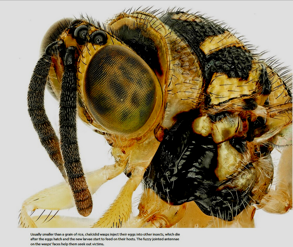 Eine Erzwespe von der Größe eines Reiskorns. Sie legen ihre Eier in andere Insekten.