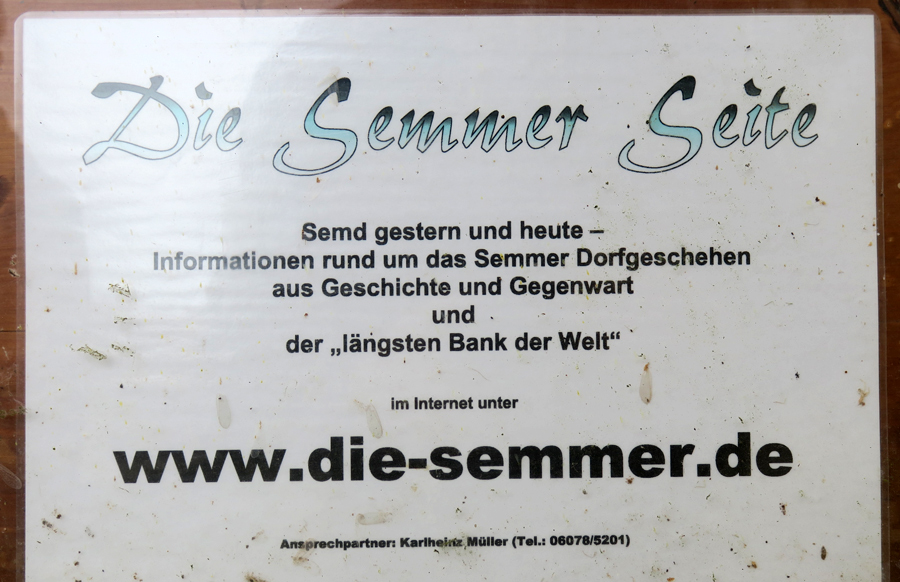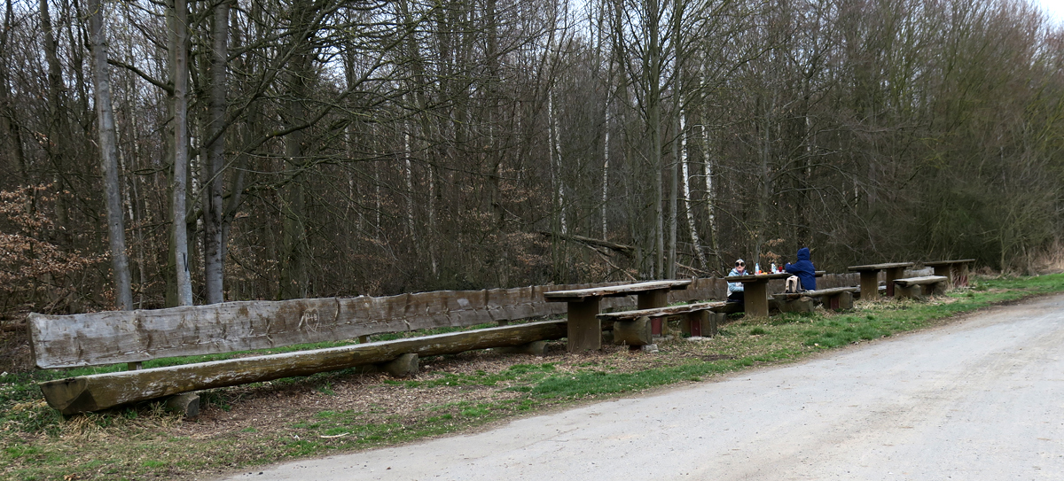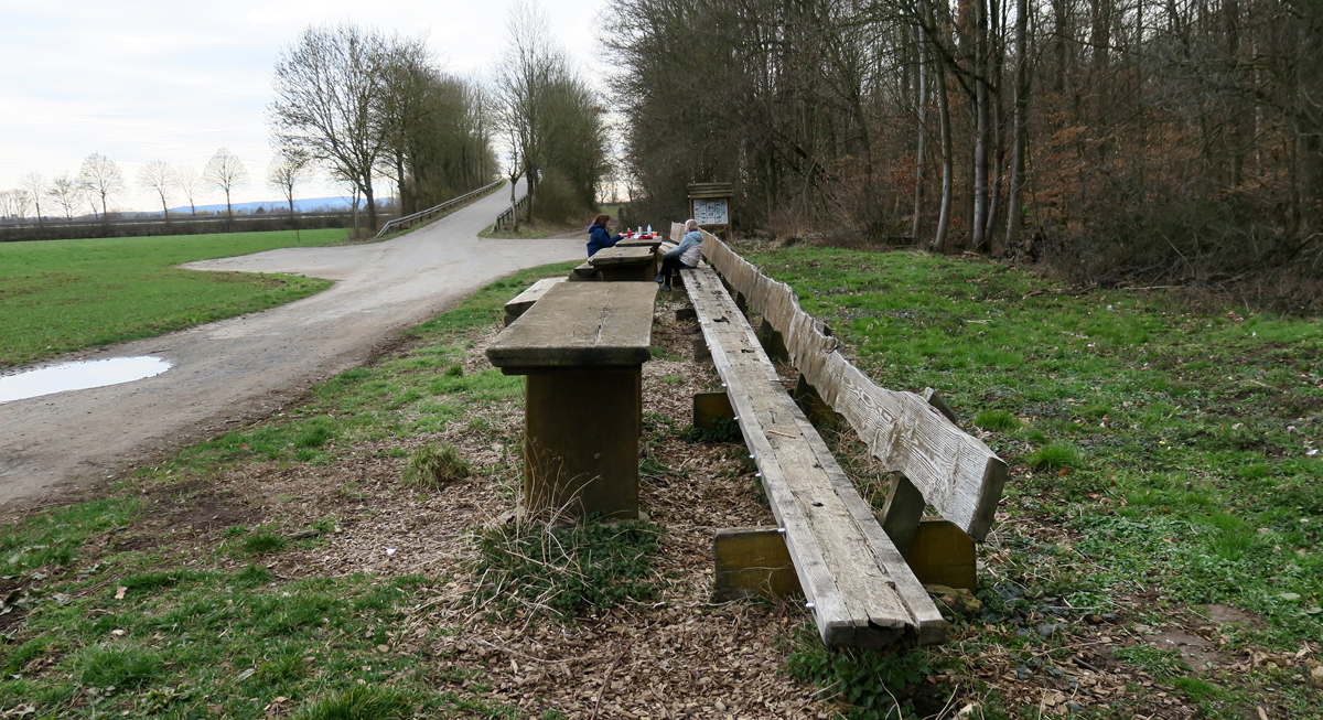 Da steht am Waldrand bei Semd (Nähe Groß-Umstadt, Südhessen) eine riesige Holzbank, mit ein paar Picknick-Tischen davor,