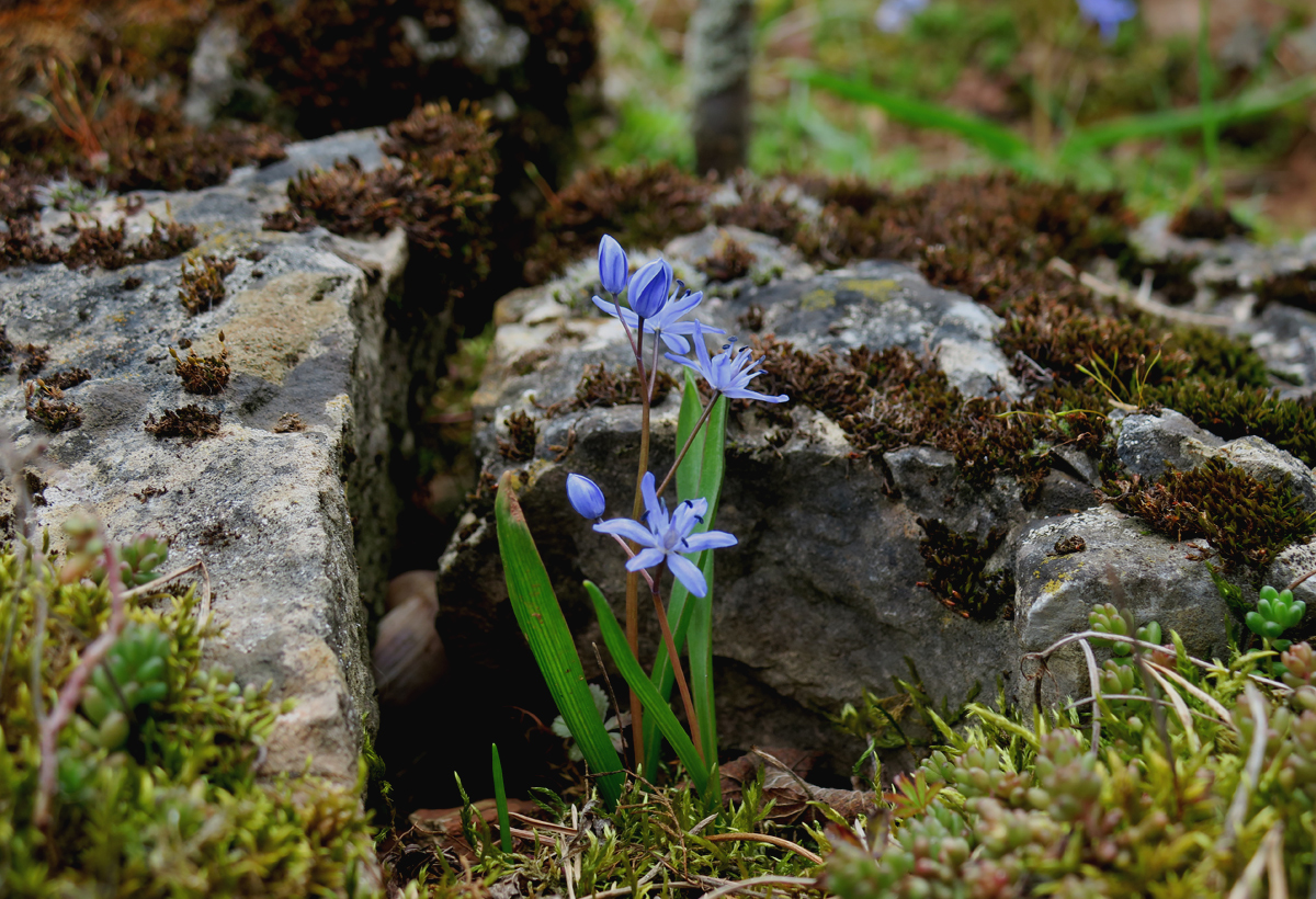 Ein graziler Frühlingsbote. Aus jeder Zwiebel entspringen zwei Blätter und ein kleiner Blütenstand.