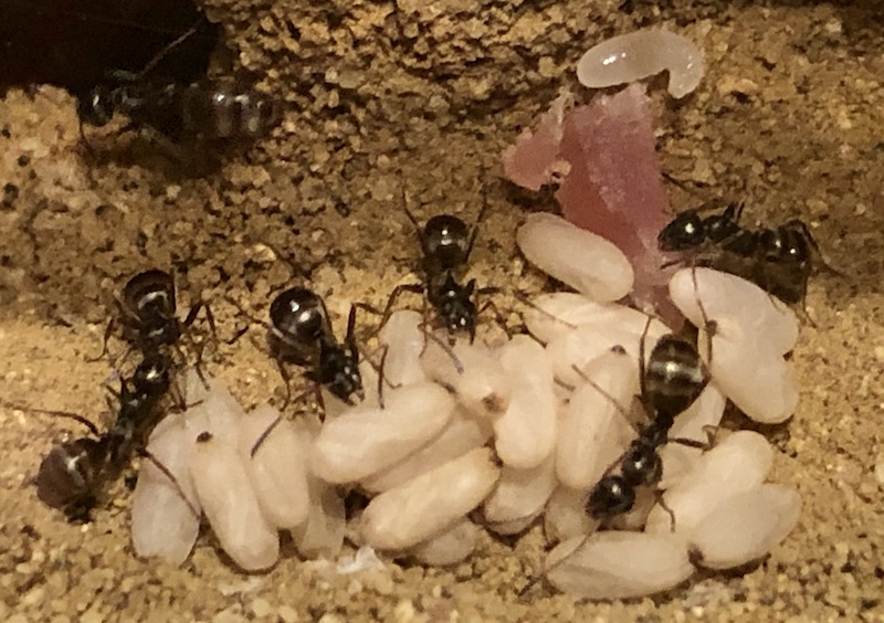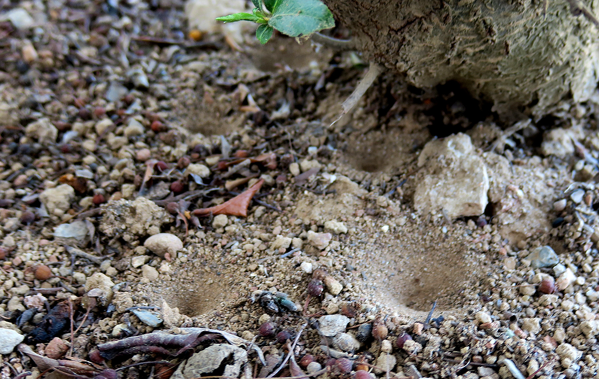 Erste Sichtung einer Camponotus piceus Arbeiterin beim Furagieren. Nach 14 Tagen jeweils Nachtfrost und bescheidenen Tagestemperaturen - immerhin meist sonnig - habe ich heute um 11:30 außer den zwischendurch aktiven Dolichoderus im Insektenhotel, die erste Ameise im Garten außerhalb eines Nestes gesehen. Ausgerechnet den sehr thermophilen C. piceus in meinem Steingarten! Bei 8°C (im Schatten in 2 m Höhe gemessen), aber durchgehender Besonnung.