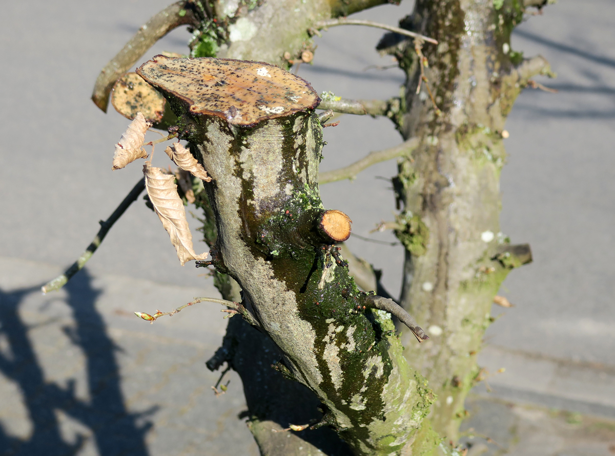 Später stirbt der ganze Zweig ab und der Befall setzt sich weiter in die Äste fort. Das Internet bietet viele Informationen dazu.