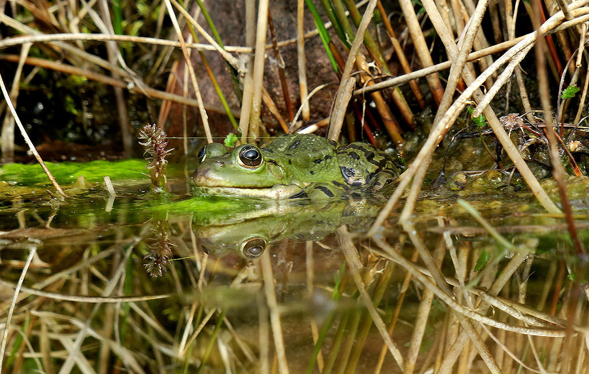 von Froschlaich oder Kaulquappen haben wir vergeblich geschaut. Leider haben sich auch hier bereits Kanadagänse angesiedelt...