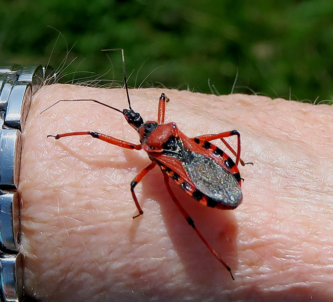 Fotografiert am 24. 06. 2022 bei Karlstadt/Main. Eine räuberische Wanze, die man gelegentlich auf Trockenrasen antrifft. Der wiss. Name bedeutet, wörtlich übersetzt, "Zornige Nasenwanze". Sie kann mit dem kräftigen Rüssel auch empfindlich stechen, wenn man sie in die Hand nimmt. Die hier hat sich friedfertig benommen.