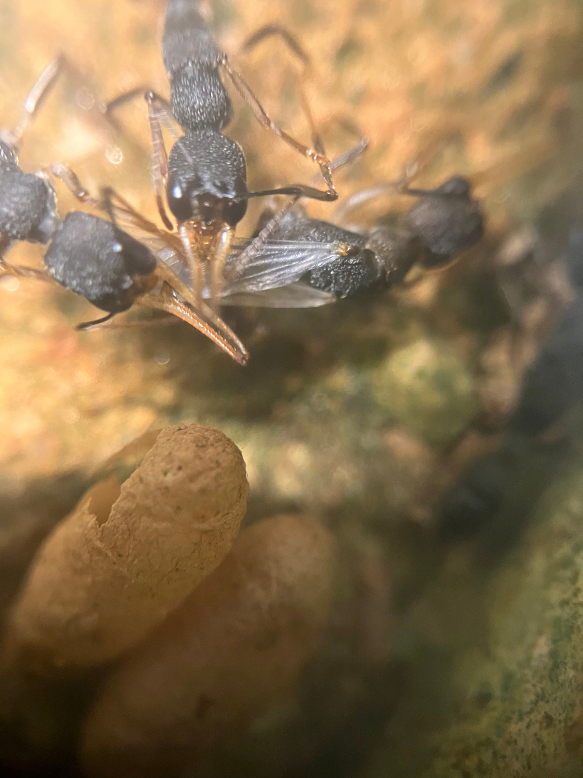 - Kokons und frische Heuschrecke