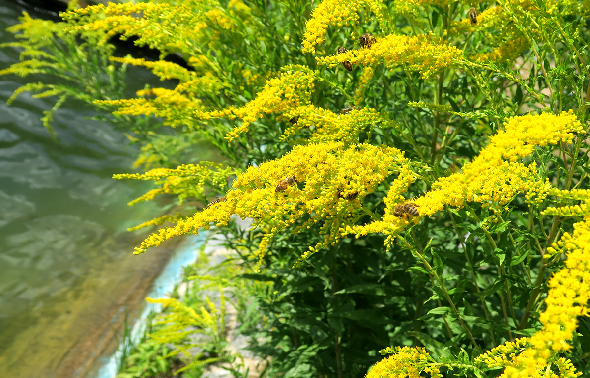 Nur wenig blüht noch, hier die invasive Kanadische Goldrute am Badeteich,
