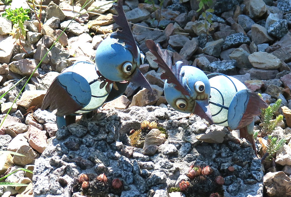 Die zwei bewachen den Eingang, was irgendwie Assoziationen hervorruft… - Ob mit der gelb-grünen Spritze
