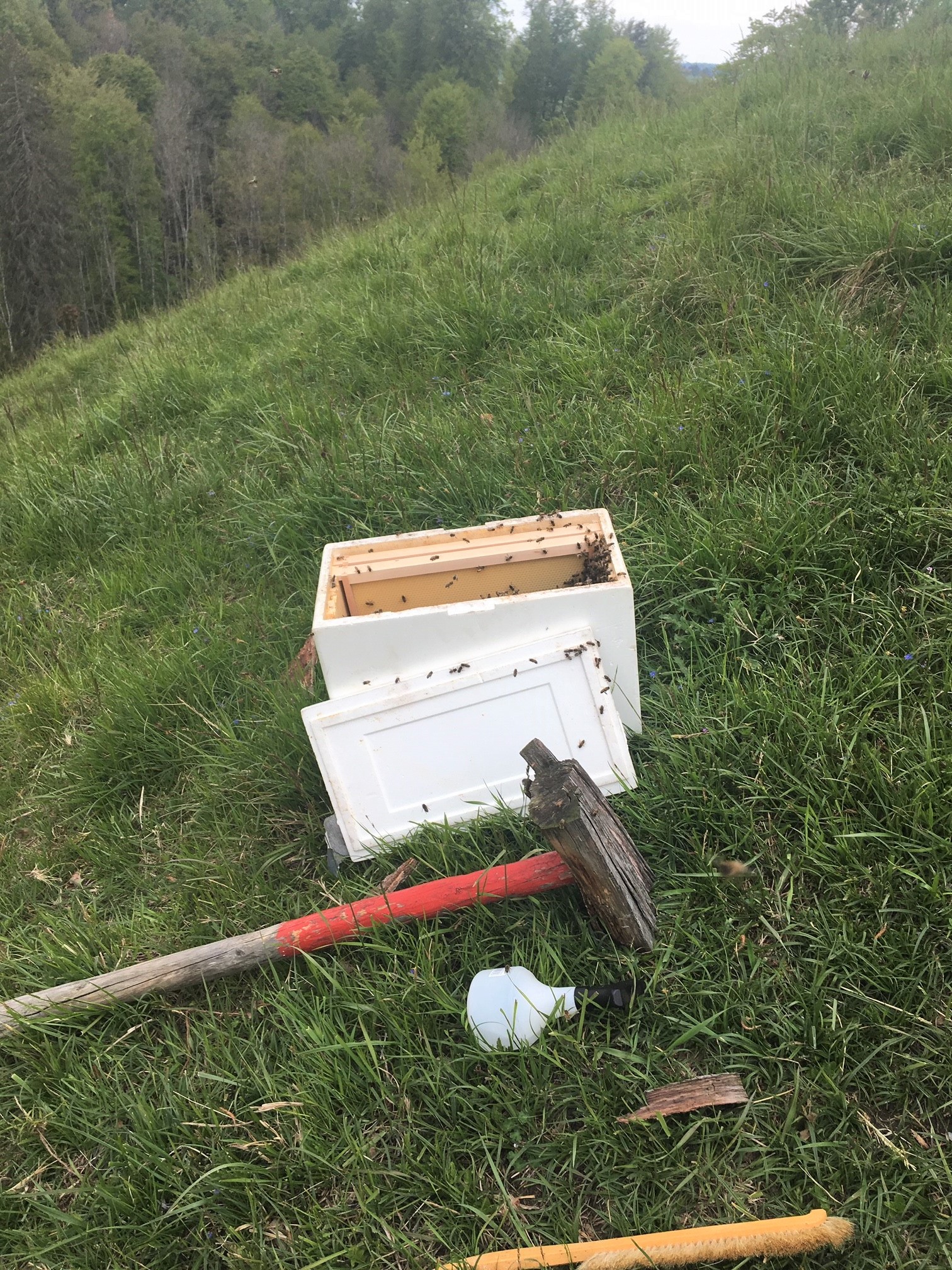 Die Königin war irgendwie schwach, ließ sich auf am Boden nieder, und war offensichtlich dem Exitus nahe. So habe ich versucht, wenigstens zu klären, ob ich mit meiner Einschätzung richtig lag.