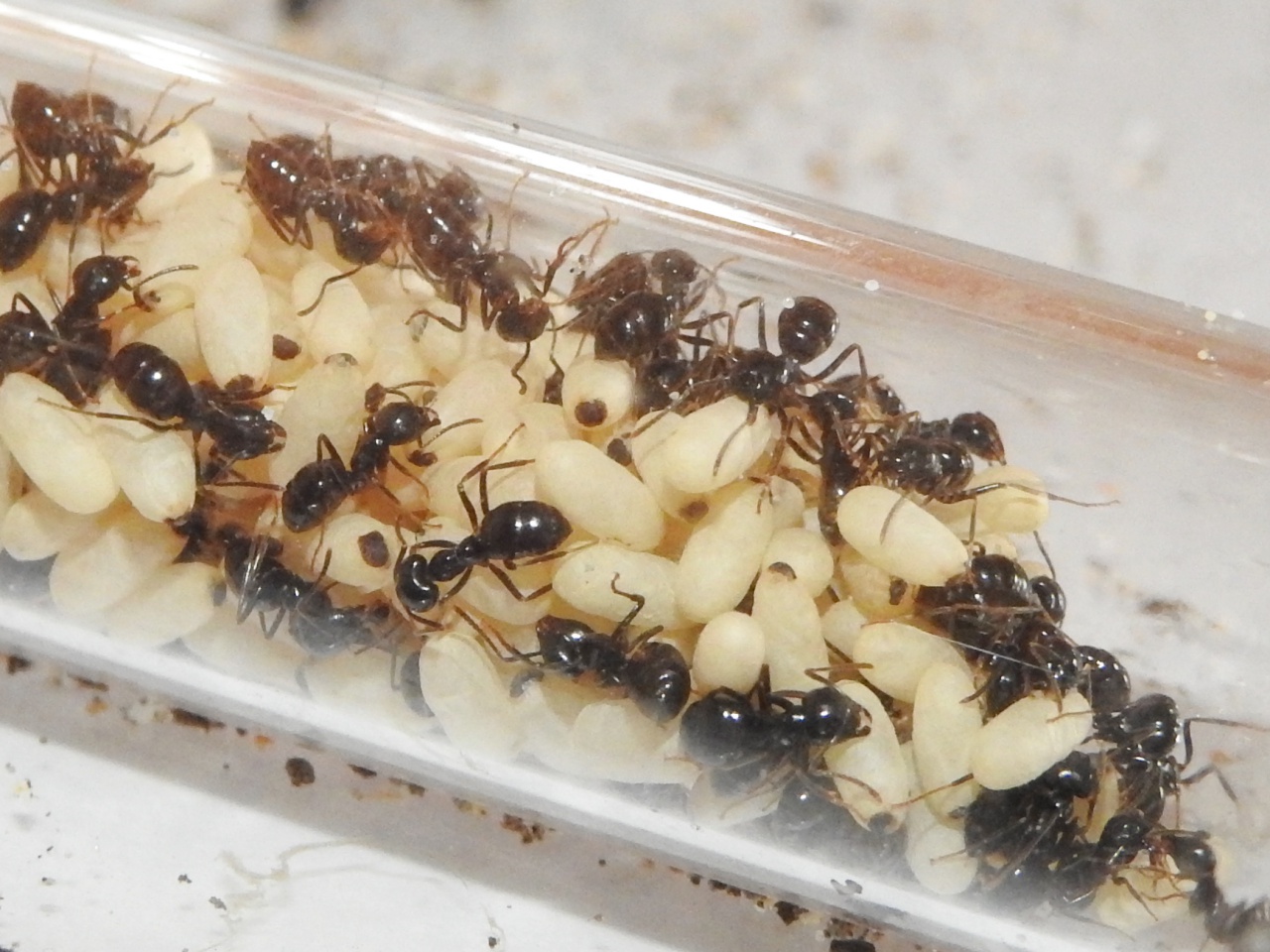 Hier ein paar Einblicke der aktuellen Brut meiner Lasius fuliginosus Kolonie: