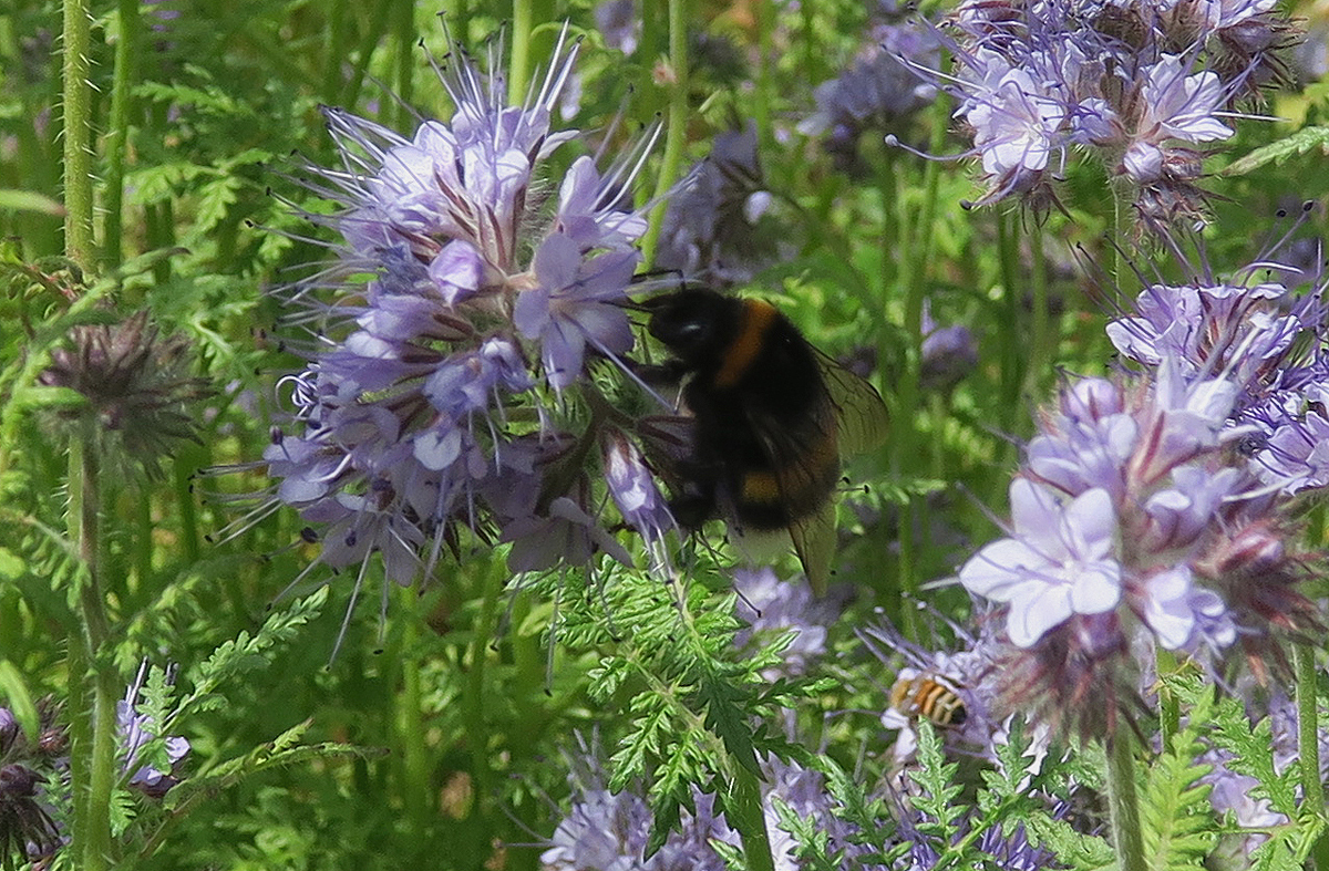 Die Rainfarn-Phazelie (Phacelia tanacetifolia) ist ja als Futterpflanze für Bienen sehr beliebt und wird mancherorts auf Feldern angebaut.