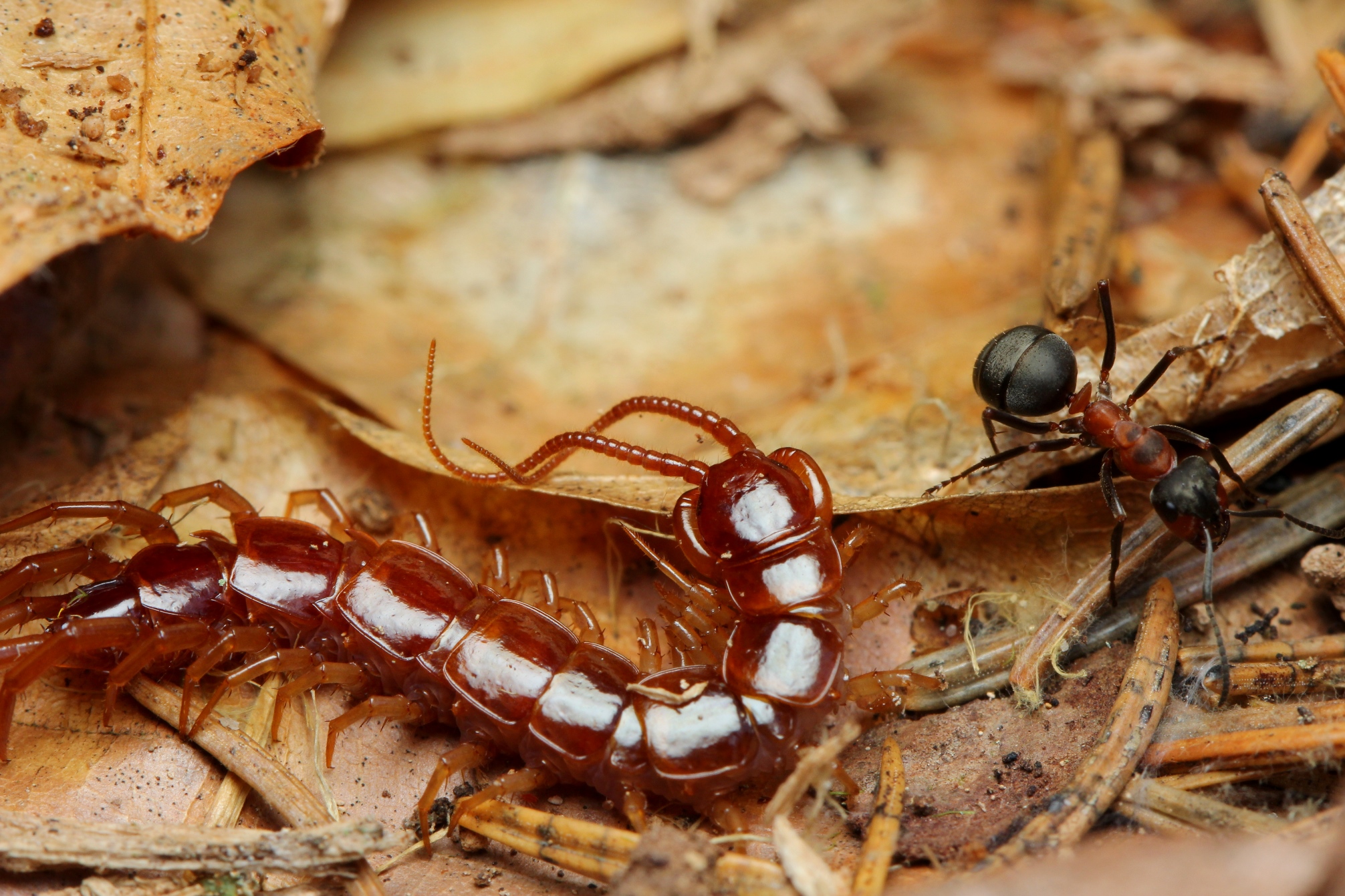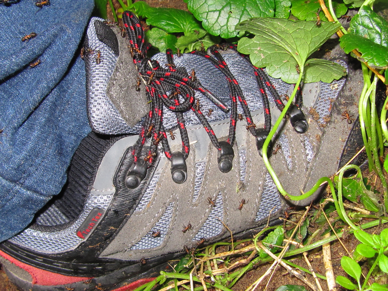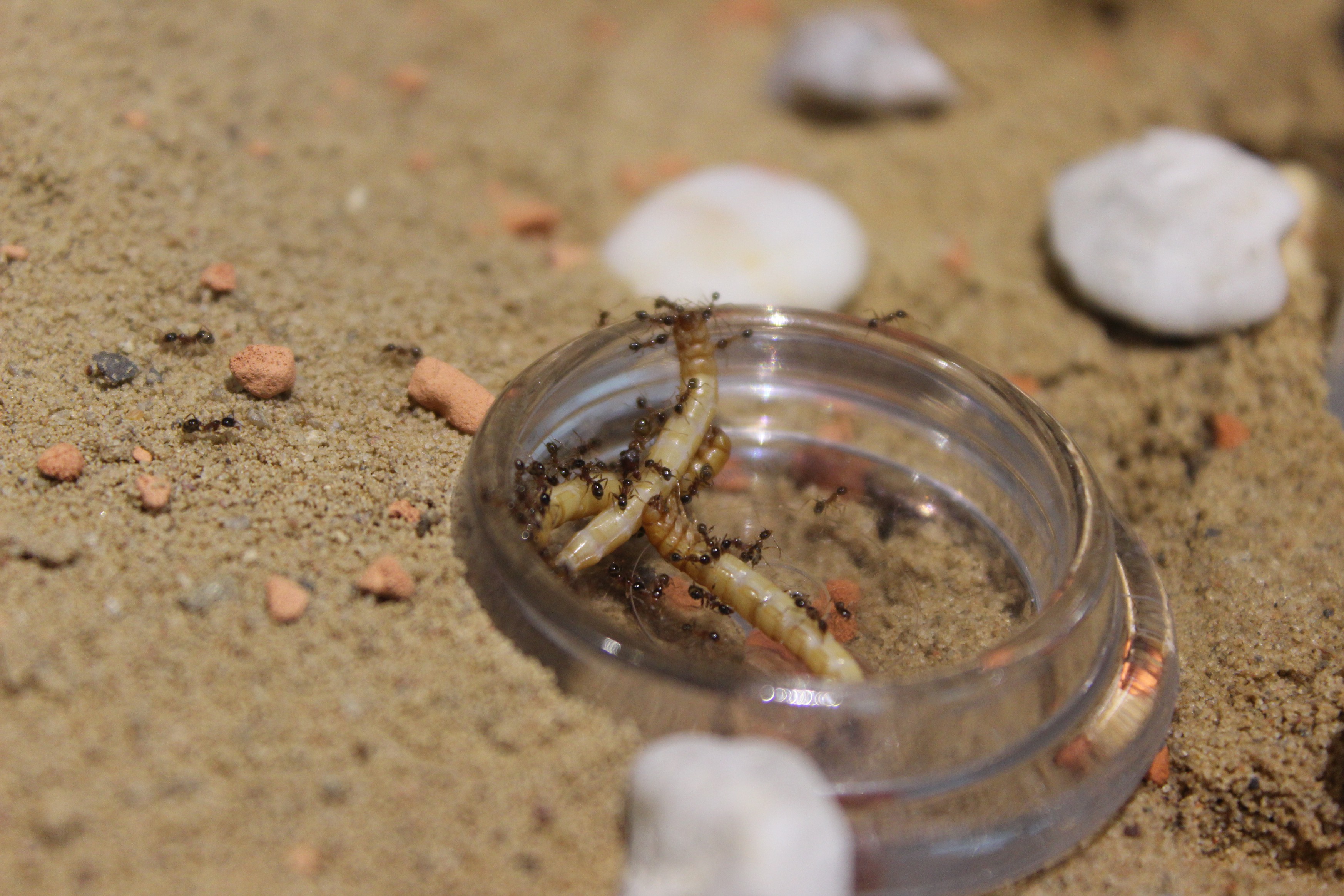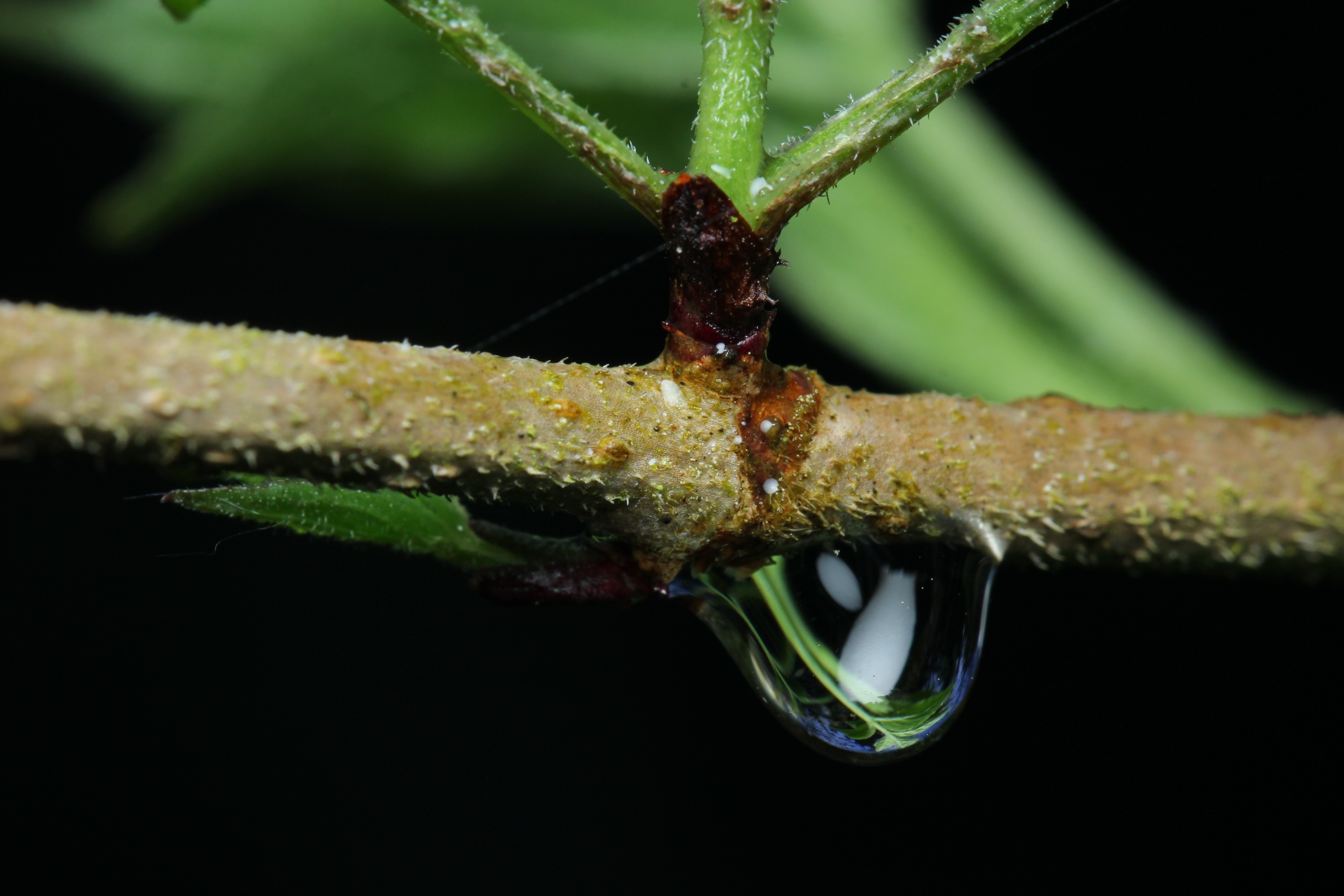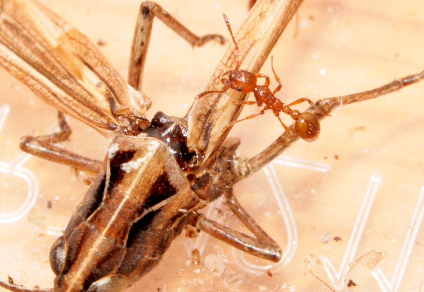 Drosophila-Größe. Sie tupfen jedenfalls ihre Rüsselchen auf die Oberfläche. Ob das irgendwelche Spezialisten für Spinnenbeute sind? Hat die Biene nach dem Giftbiss noch Nektar hervorgewürgt? Oder sind es dieselben Taufliegen, die mir meinen Dämmerschoppen streitig machen wollen?