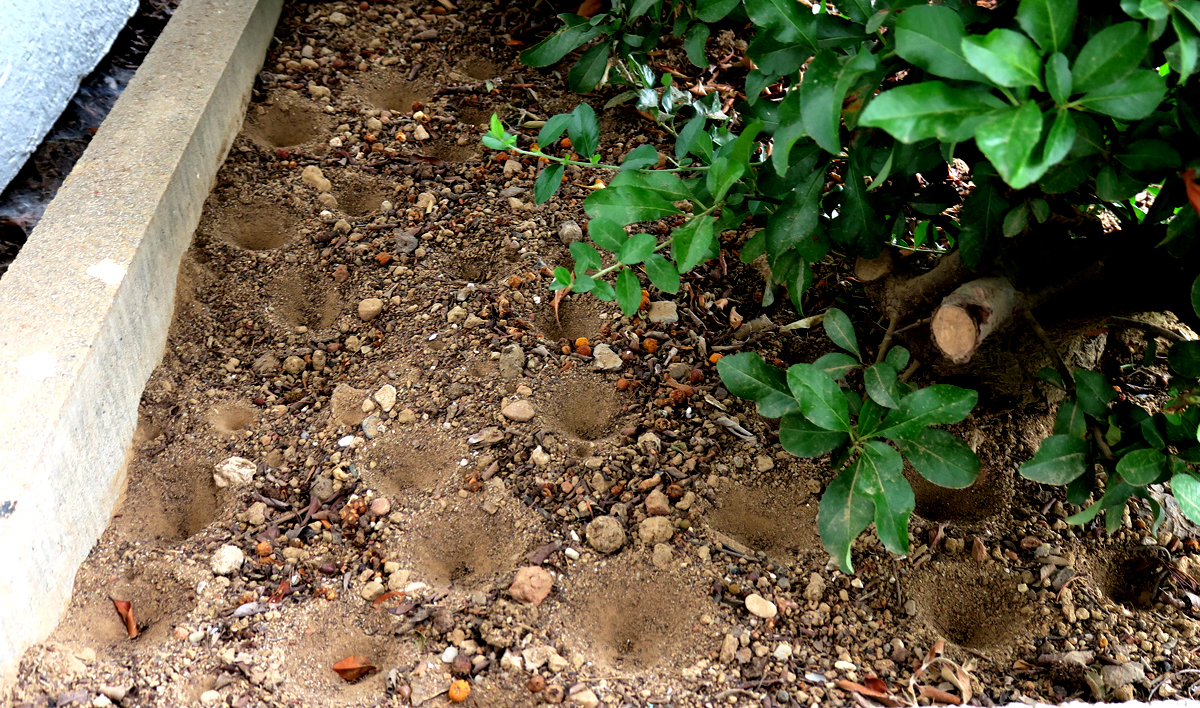 Selbst eine Gruppe Tetramorium cf. caespitum hat den komplizierten Weg zu der Schale auf der Abdeckung des Komposthaufens entdeckt.