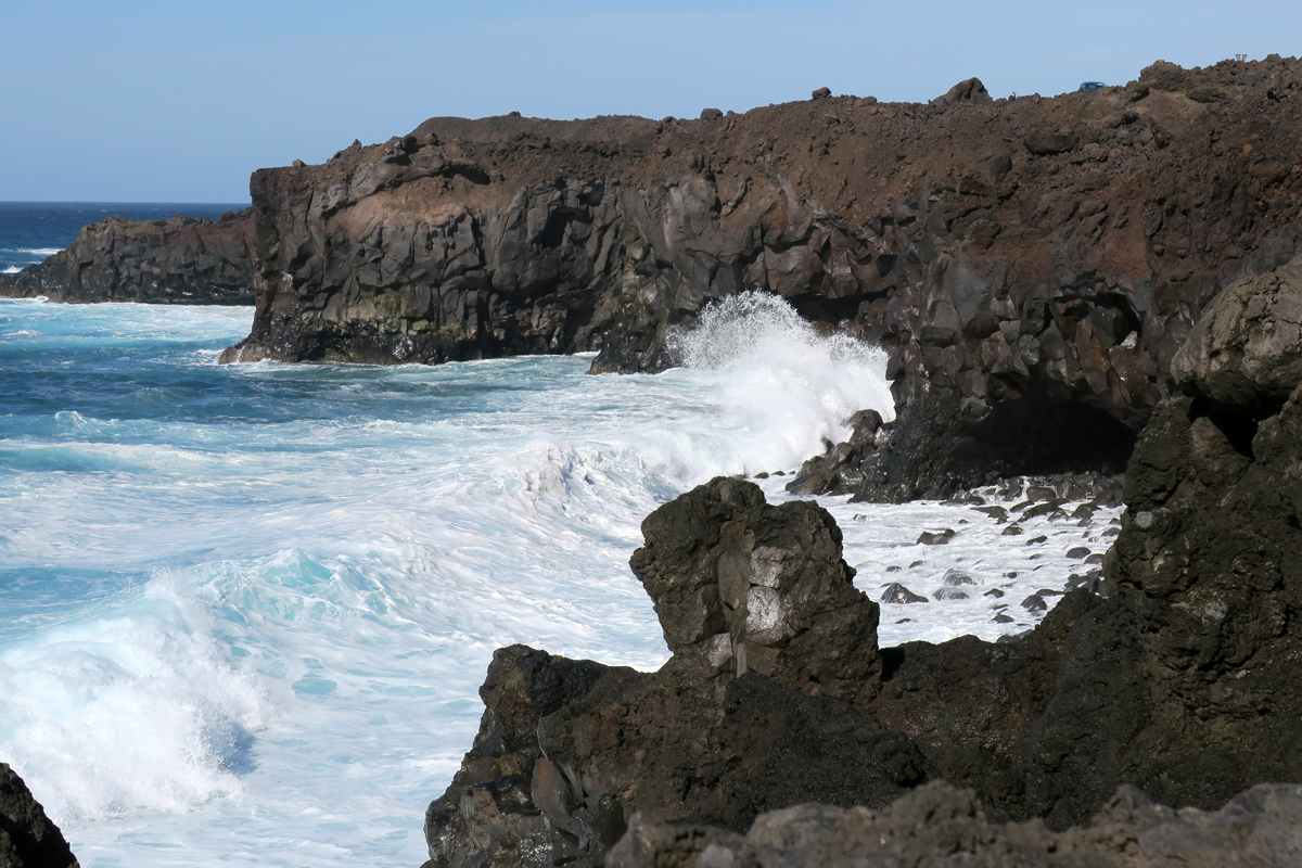 Donnernd rollen die Wellen in kurze Lavahöhlen. Gut gepflegte Wege erschließen das Chaos. Wie ein Schwalbennest