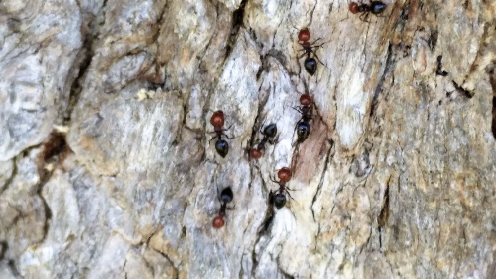 Crematogaster scutellaris, auch Kippleibameise oder Rotkopfameise genannt. Ich beobachte die (recht wehrhafte) Kolonie, die einen halbmorschen Olivenbaum als Behausung gewählt hat, bereits seit einigen Jahren. Die roten Köpfe dieser Ameisen sind schon von weitem gut erkennbar, und, wie ich finde, sehr hübsch! :)