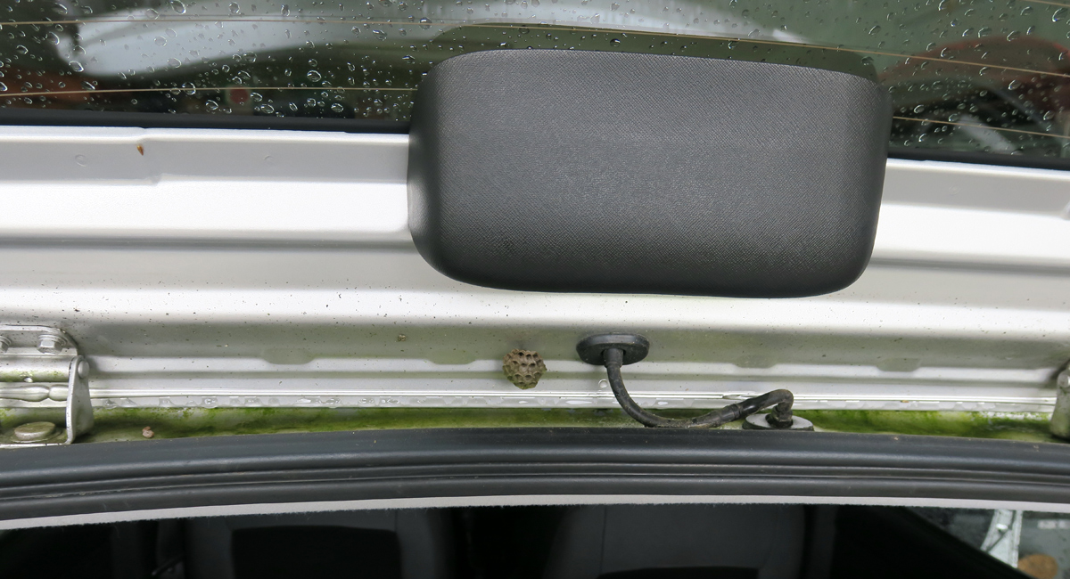 Der Zugang bei geschlossener Heckklappe erfolgte wohl über den Spalt zwischen Dach und Klappe,
