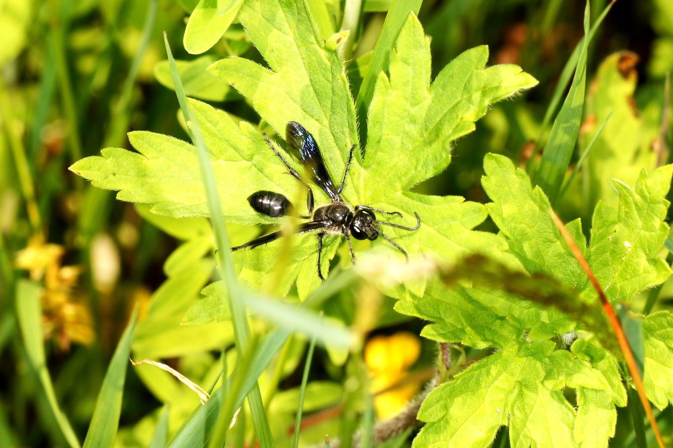 Endlich ist sie wieder im Garten zu sehen: Die in Europa einzige Grabwespe, die nicht gräbt! Isodontia mexicana, die Schöne aus dem fernen Kontinent.