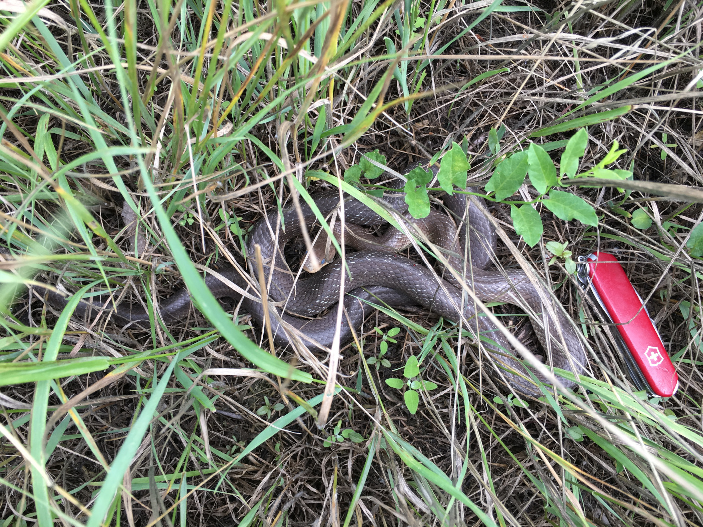 Ich nehme an hier handelt es sich um eine Äskulapnatter die sich demnächst häuten wird (Aufnahme von heute, 22.06.2020).