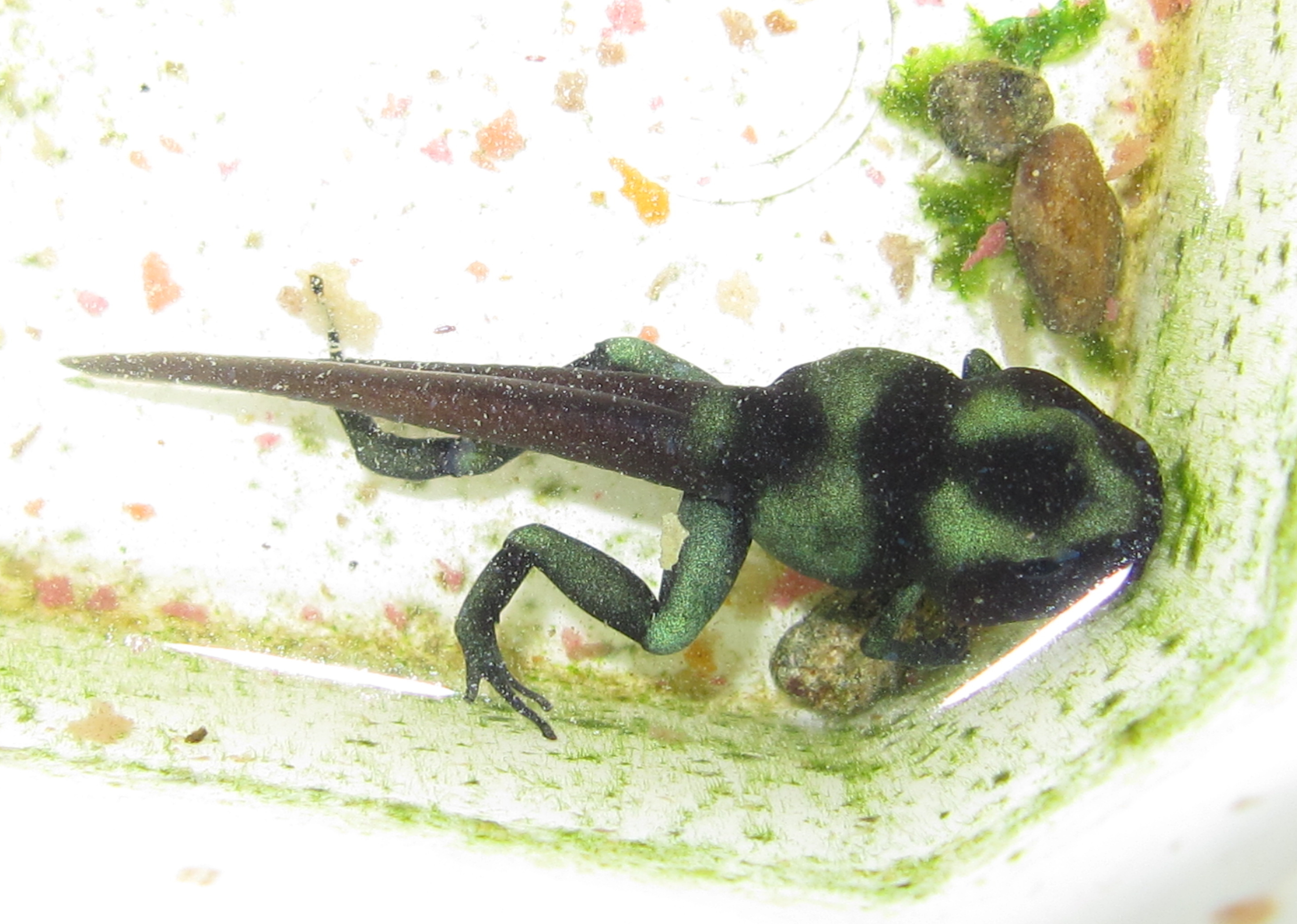 Die kleinen Dendrobates auratus -Kaulkquappen (aus diesem Beitrag) verwandeln sich langsam in kleine Fröschchen: