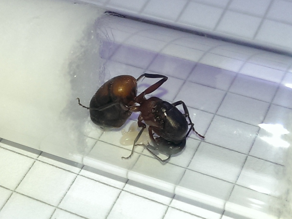Mit Sicherheit keine Fälschung! Eine Camponotus cruentatus-Königin beim Versuch eines Kopfstandes ;) :