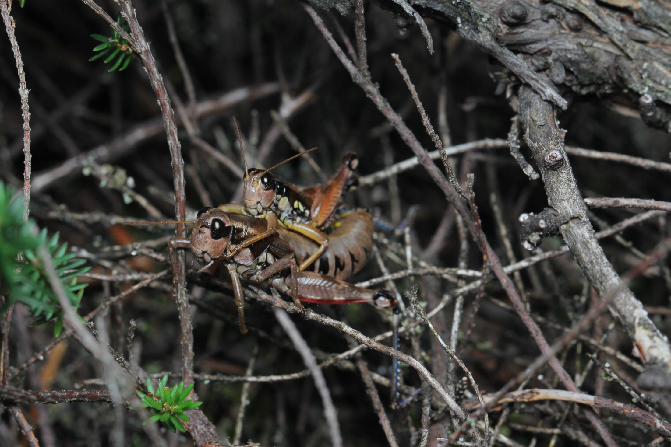 Beachte: Auf dem Rücken der Gyne sind Wassertröpfchen zu sehen! In der Kammer hat es also gegen 100% Luftfeuchte, und das noch um die Mittagszeit an einem relativ warmen Tag.