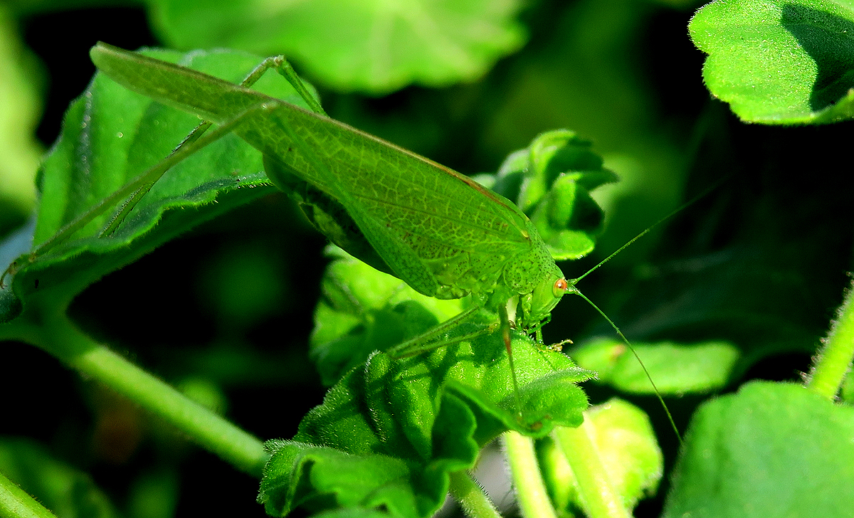 Die Bestimmung ist etwas schwierig, aber ich komme auf ein Weibchen von Phaneroptera nana, der „Vierpunktigen Sichelschrecke“.