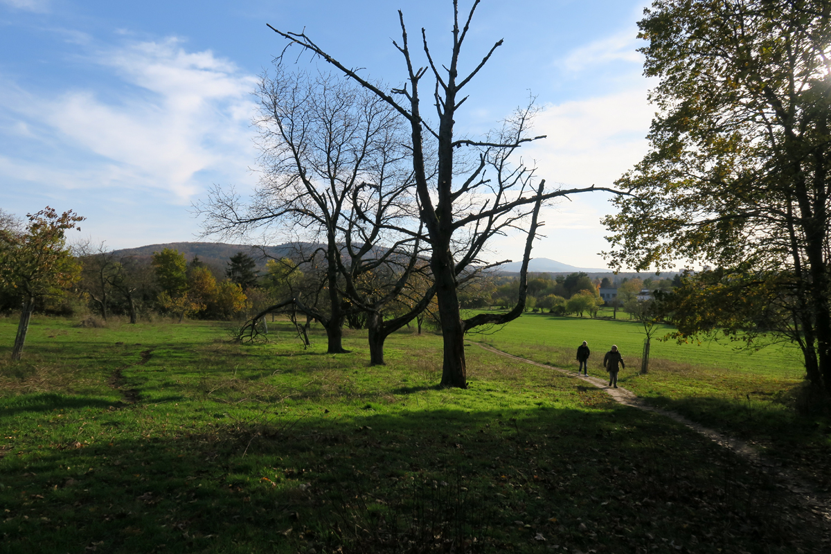 Noch ist Laubfärbung zu sehen. Die drei uralten Kirschbäume allerdings sind schon länger tot, befallen vom Hallimasch.