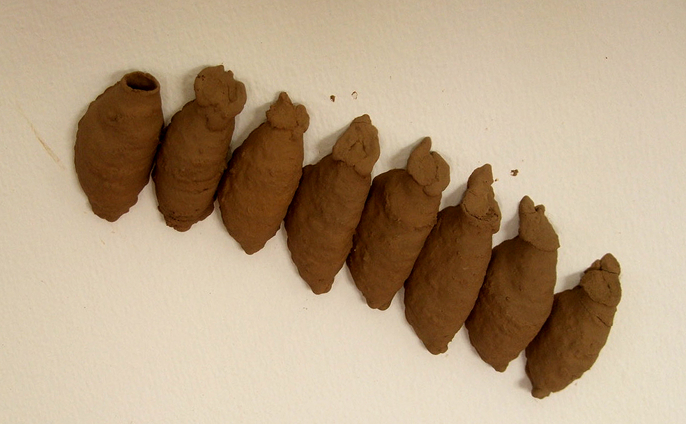 Die Wespe hat jeden Tag so eine Zelle gebaut, mit gelähmten Insekten verproviantiert, ein Ei hinein gelegt und die Zelle versiegelt.