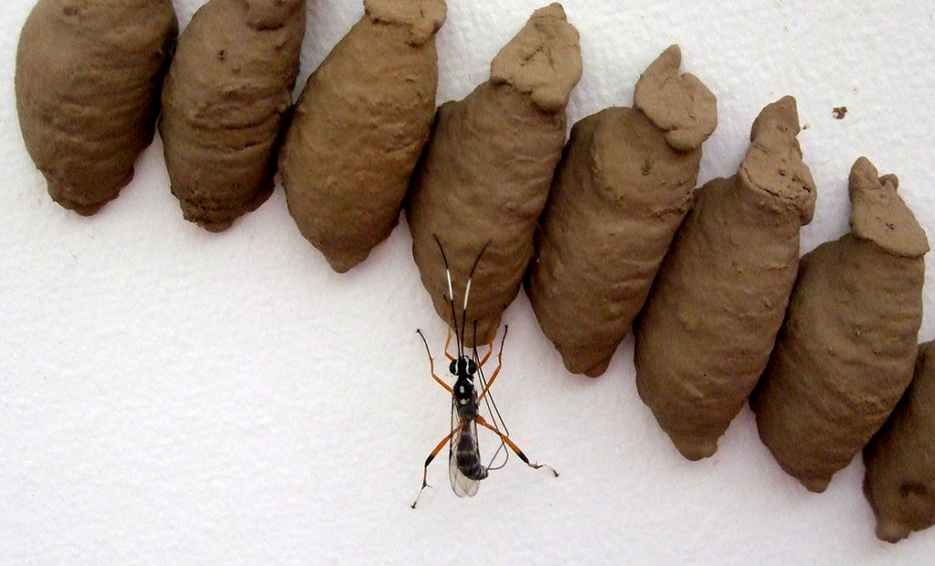 Sie bohrt die Lehmzellen an um Ihre Eier dort hinein zu legen.